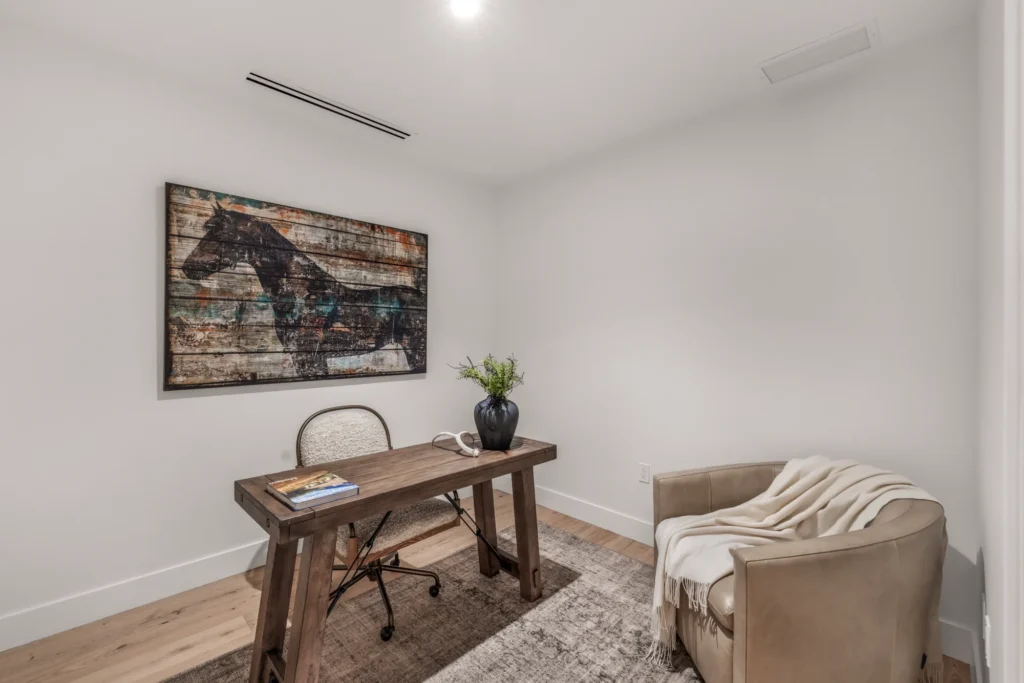The Project is under development and is not yet complete. The Residence is currently designed to include accessible features such as wider turning radius in closets, storage areas and laundry room, roll-in/transfer shower in the secondary bath, and lower kitchen island sink height. All floor plans, specifications, furnishings, finishes, equipment, trim, features, amenities, and any other characteristics shown here or in any renderings, illustrations, photos, designs, or other visual depictions are illustrative only and may be changed without notice. Statements of approximate square footages are subject to change. Square footage calculations may be made in a variety of manners, and square footage statements cannot be relied upon in deciding to purchase property in the Project or in establishing a purchase price.
